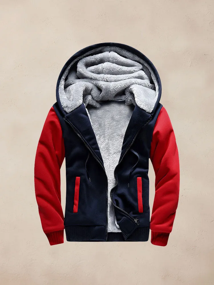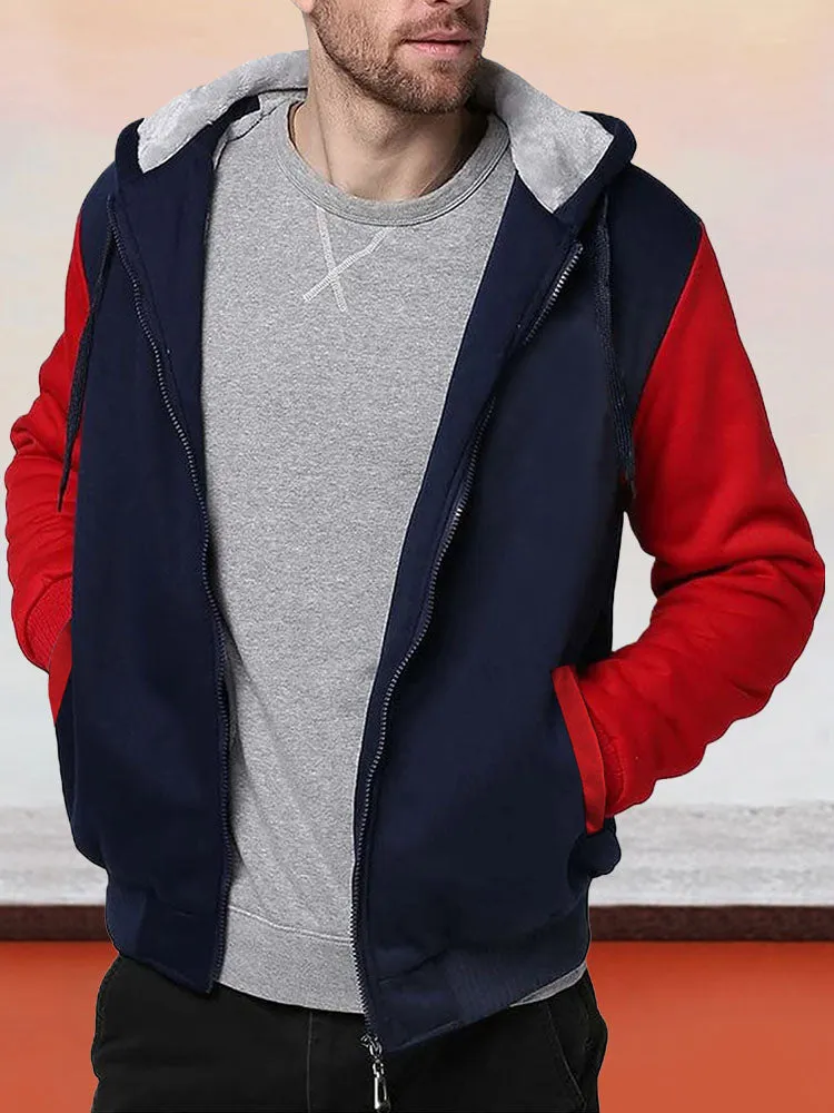 • Details: Drawstring hooded, 2 side pockets, fleece lined, color blocking design