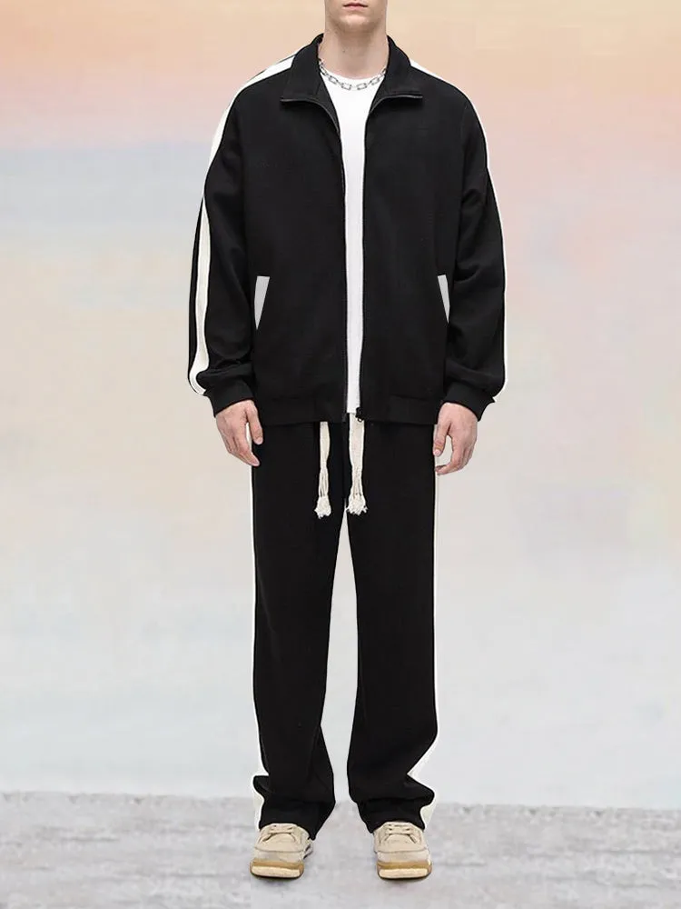 • Sweatpants: Elastic waistband with drawstring, side pockets